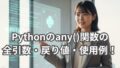 この記事では、Pythonのall()関数について解説しました。all()関数は、リストやイテラブルなオブジェクトの要素が全て真であるかどうかを判定するための便利な関数です。