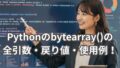 Pythonの組み込み関数であるbytes関数の全ての引数、戻り値、具体的な使用例について解説します。